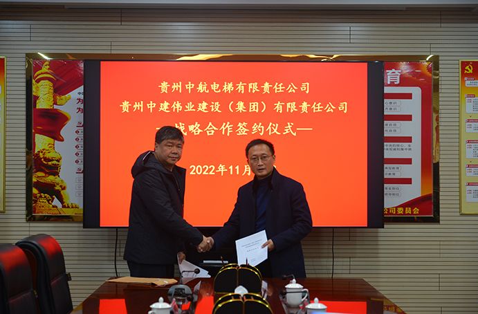 2022年11月30日,貴州中建偉業(yè)建設(shè)(集團(tuán))有限責(zé)任公司黨委副書記、總經(jīng)理馮安翔,在集團(tuán)公司17樓會(huì)議室熱情接待貴州中航電梯有限責(zé)任公司黨委書記、董事長胡明一行,并簽署戰(zhàn)略合作框架協(xié)議。集團(tuán)公司黨委副書記王莉,黨委委員、副總經(jīng)理王引明出席簽約儀式。