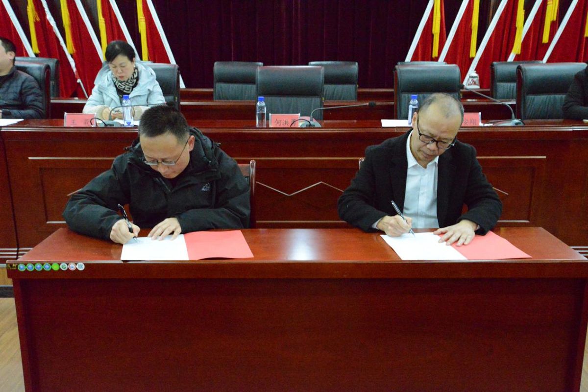 集團(tuán)公司黨委書記、董事長何洪勇與黨委副書記、總經(jīng)理馮安翔作代表簽訂“雙層雙向”承諾書。